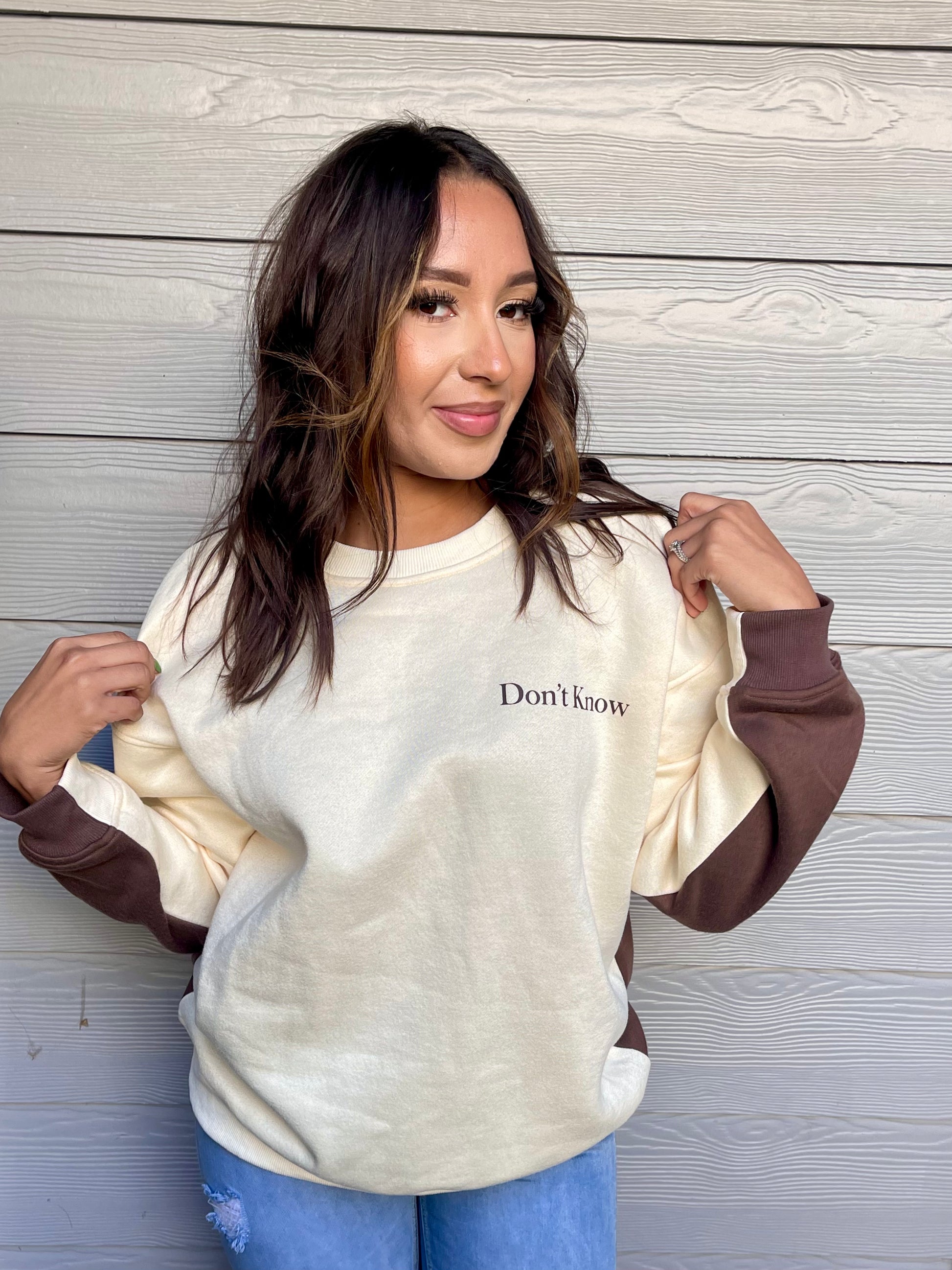 Color block sweatshirt. Soft. True to size. Model is wearing a Medium.