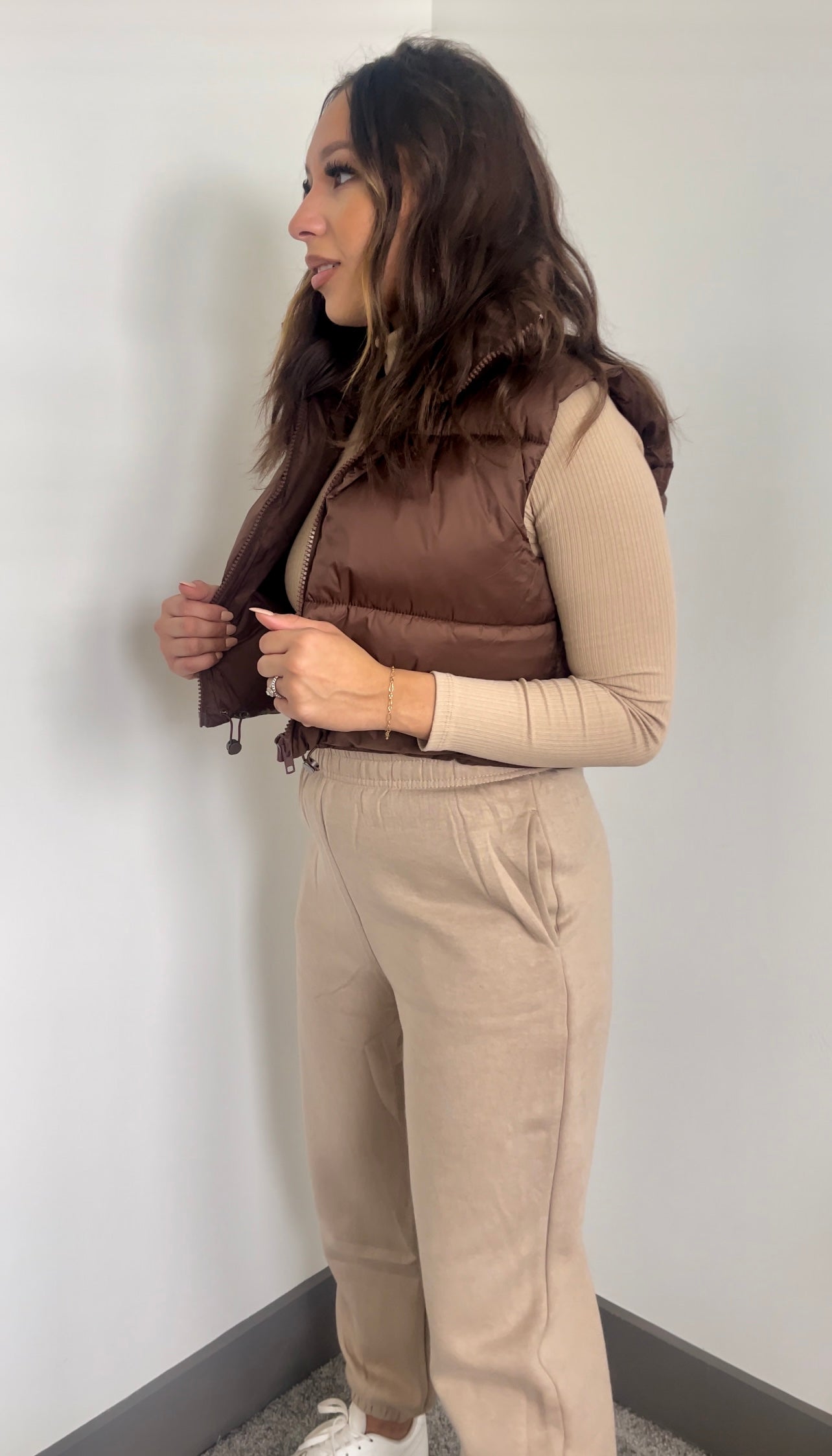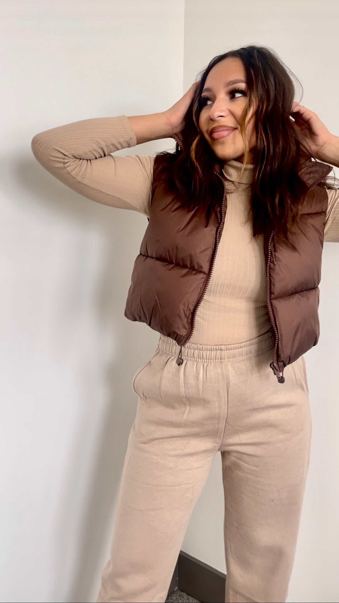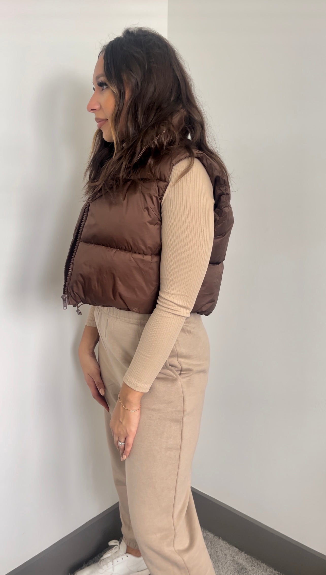 Fluffy, cropped, puffer vest true to size